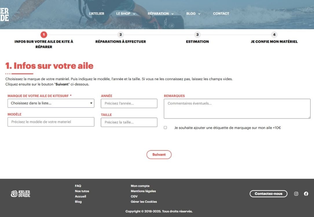L'Atelier du ride, géré par Gary, propose la réparation de kitesurf, wing et surf à Paris et en Ile-de-France.